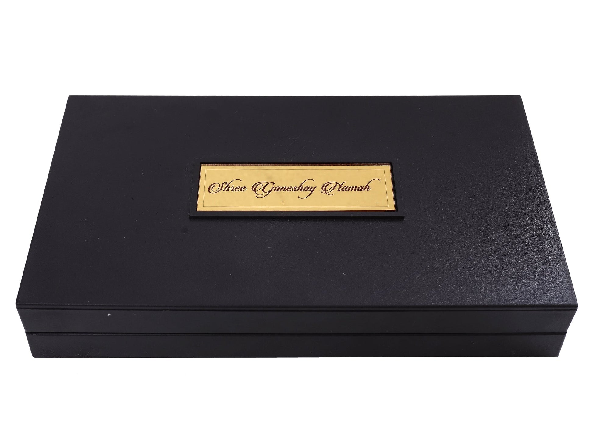 Step into divine grace with our Charan Paduka made in gold foiling of Ganeshji. Crafted with intricate details and expert craftsmanship, these padukas will bring blessings and positivity to your life. Made with premium materials, these padukas are a perfect addition to your spiritual collection.