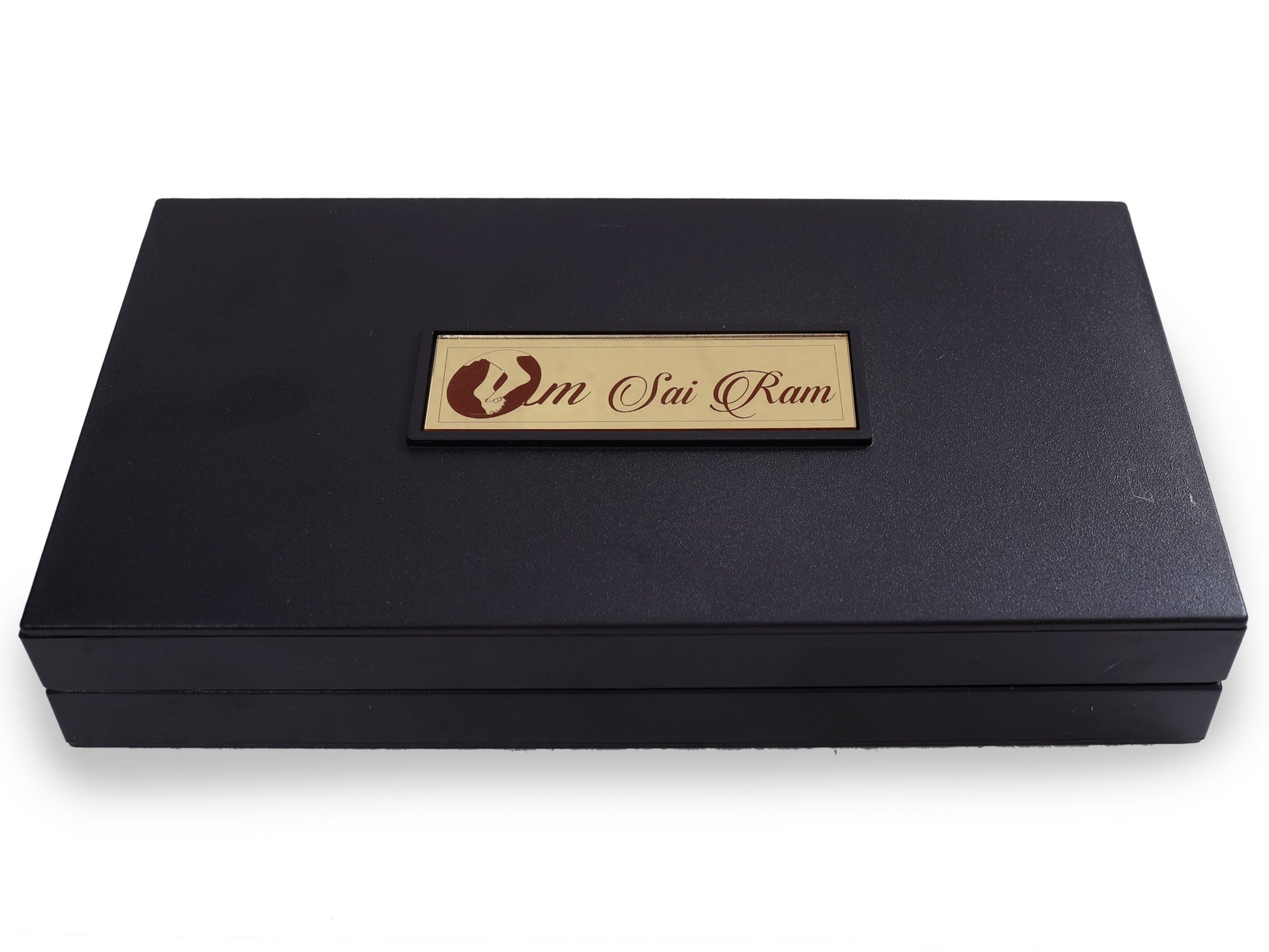 Experience the divine energy of Sai Baba with our Charan Paduka, made with exquisite gold foiling. Let these beautiful footprints guide you to ultimate peace and enlightenment. Place them in your home or office for a constant reminder of Sai Baba's grace and blessings.