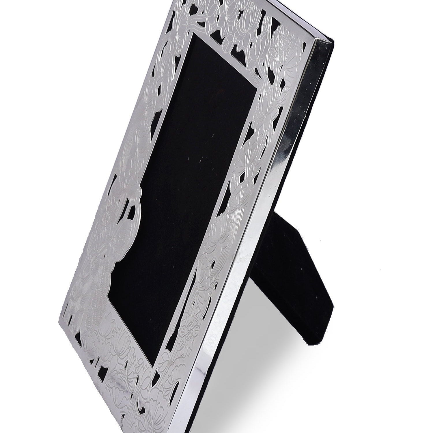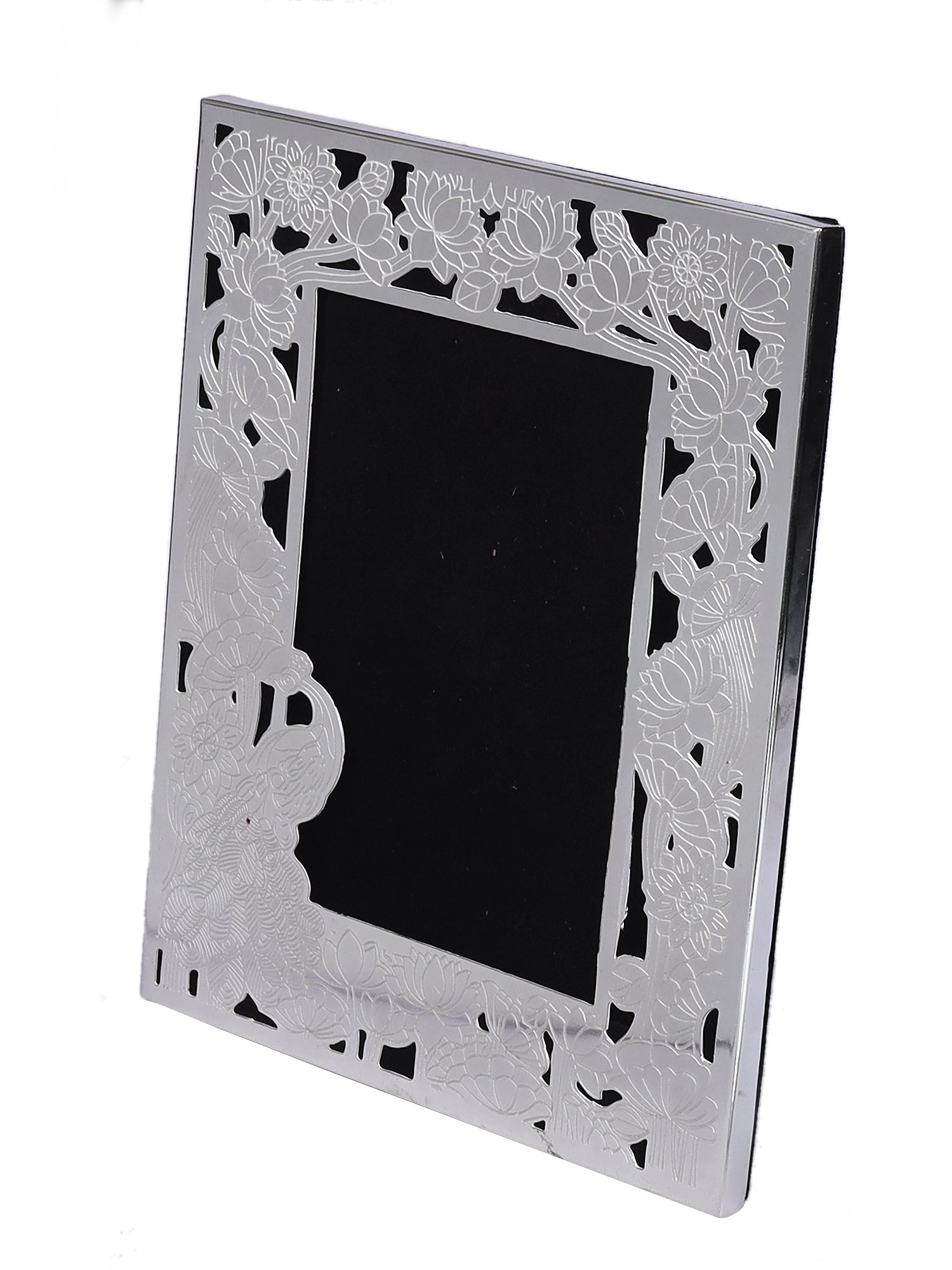 Expertly crafted frame made from high-quality brass material with beautiful silver etching details. Perfect for displaying your favorite photos or artwork. Elevate any room with this elegant and durable frame.