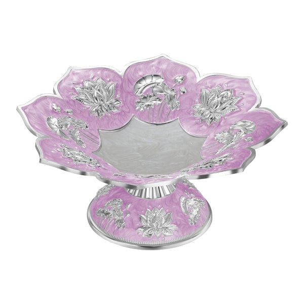 Add a luxurious accent to your home décor with this Ornamental Silver & Lavender Fruit Platter. Featuring a stunning lavender enamel base with silver floral embossing, this bowl blends vintage charm with regal elegance. The scalloped edges and intricate patterns make it a standout piece—ideal for use as a centerpiece, fruit platter, or festive gift.