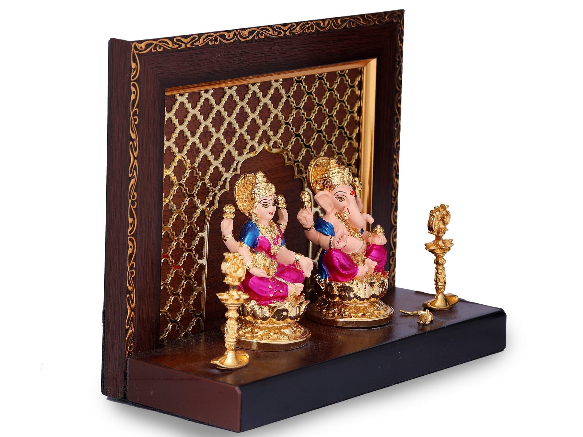 This Ganesh Laxmi figurine is a symbol of wealth and prosperity. Made with a gold-plated resin base material and designed in a sitting position, it exudes elegance and sophistication. Perfect for enhancing the ambiance of any space and bringing good fortune to its surroundings.