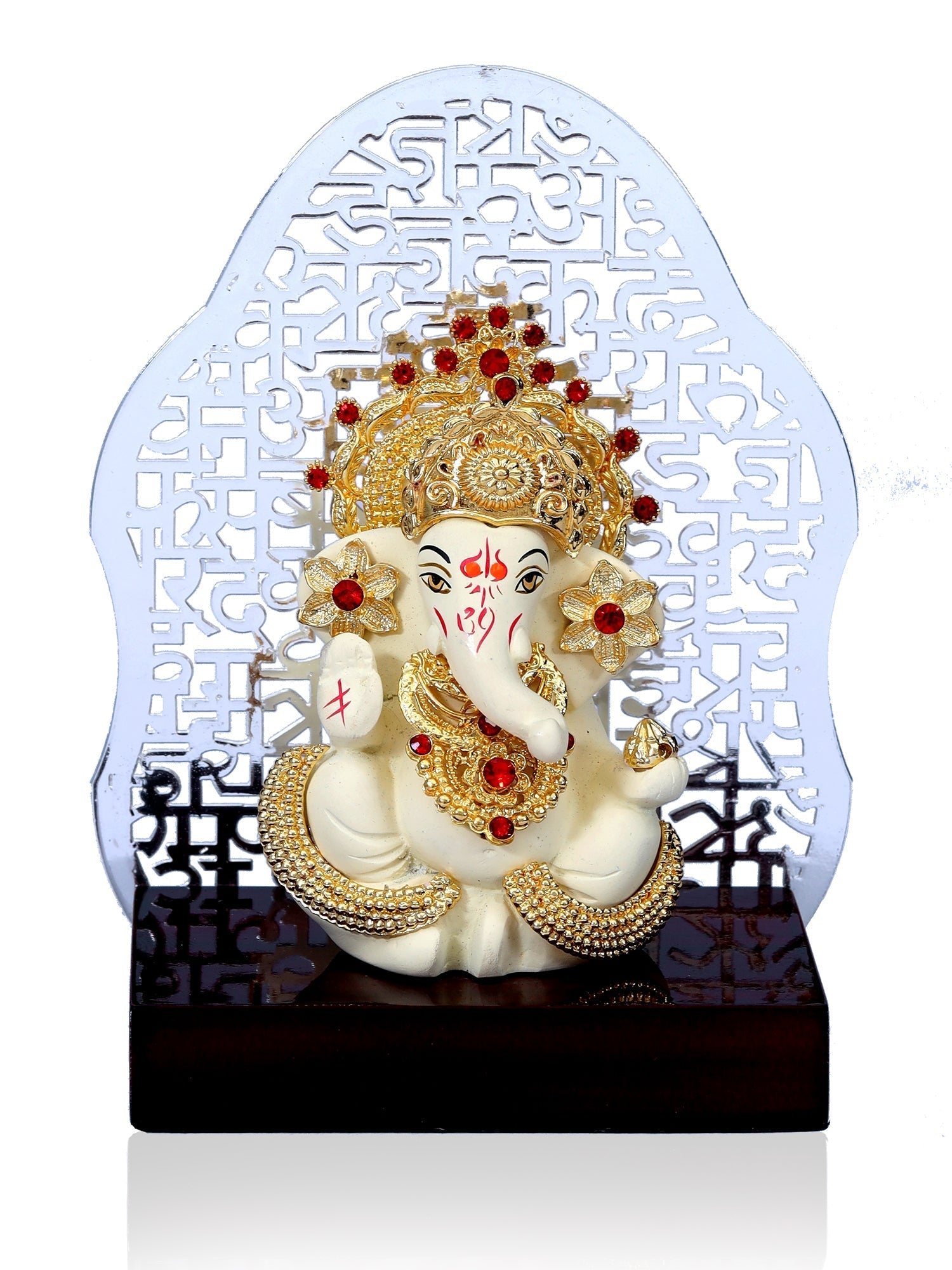 This Ganesha figurine is made with gold plating and sits in a traditional sitting position. Adorn your home with this elegant and auspicious piece, invoking blessings and prosperity into your space. Made with high-quality materials, this Ganesha brings a touch of spirituality and beauty to any room.