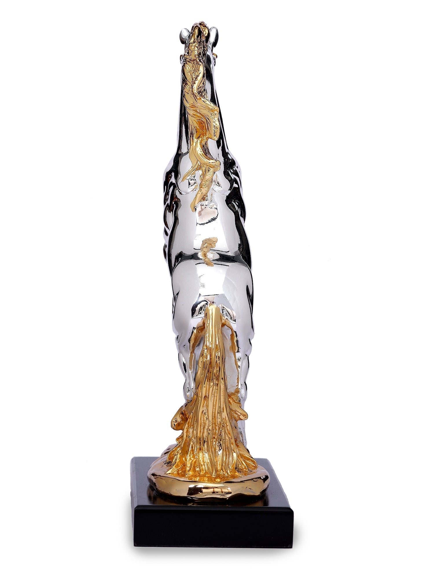 This beautiful horse figurine is expertly crafted from silver plated brass base material, giving it a sleek and elegant appearance. With its standing position, this horse adds a touch of grace and majesty to any space. Its high-quality material ensures long-lasting durability and adds a touch of sophistication to any decor.