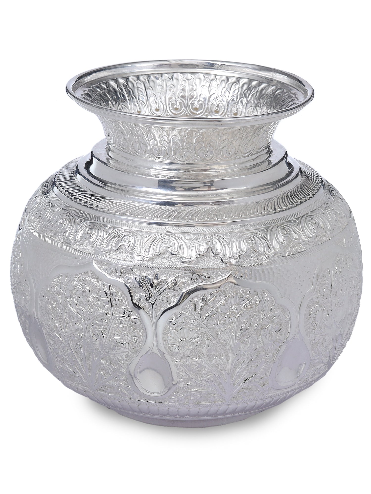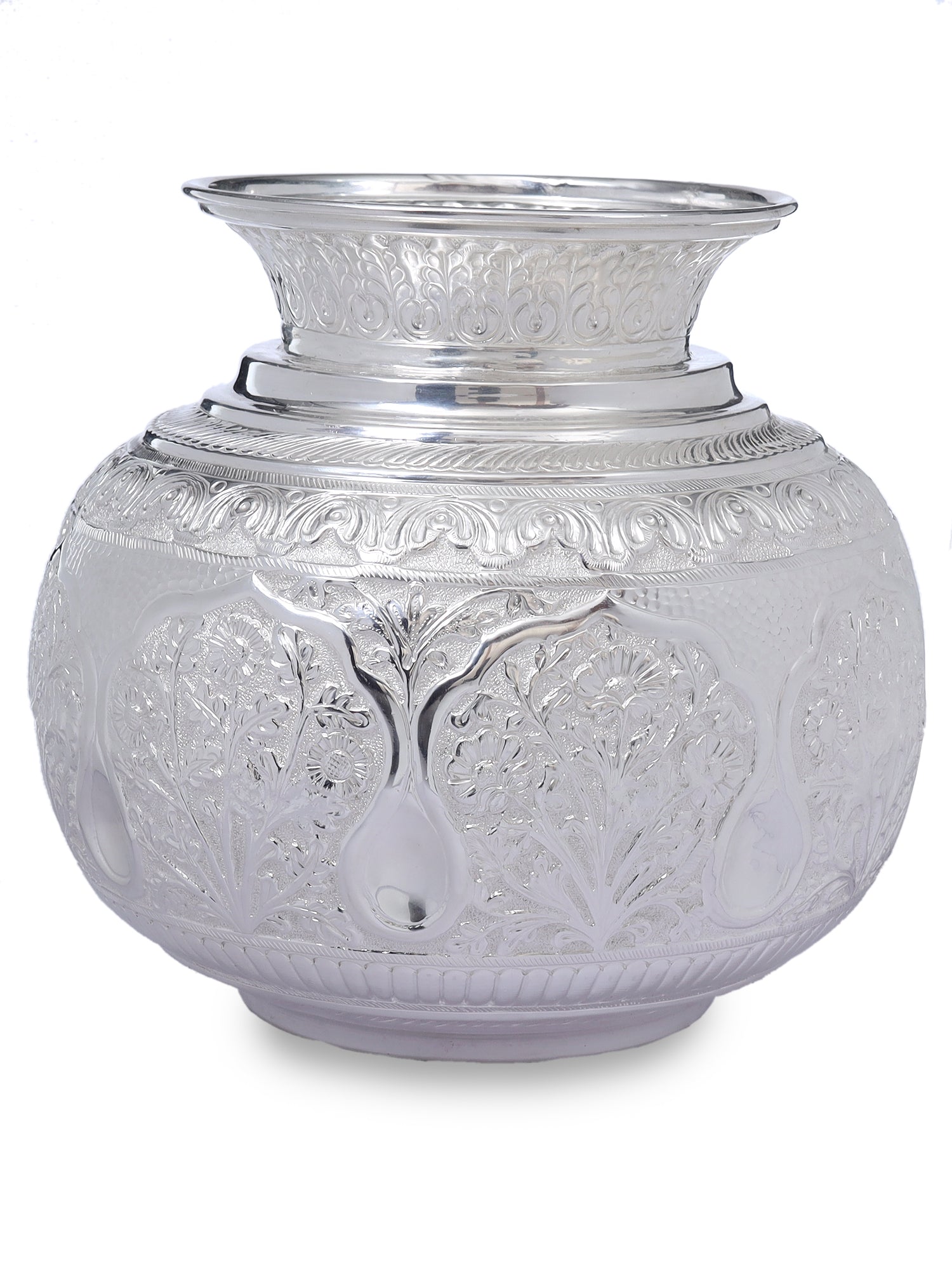 Expertly crafted with silver plating on a durable brass base material, this stunning Kalash adds elegance and sophistication to any home. With its intricate design and high-quality construction, it is a must-have for any collector or connoisseur of fine decor. Embrace the beauty and luxury of this timeless piece.