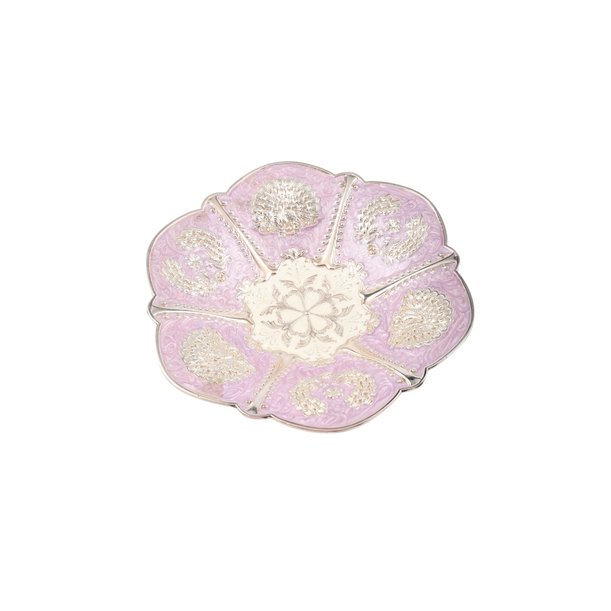 Add a luxurious accent to your home décor with this Ornamental Silver & Lavender Fruit Platter. Featuring a stunning lavender enamel base with silver floral embossing, this bowl blends vintage charm with regal elegance. The scalloped edges and intricate patterns make it a standout piece—ideal for use as a centerpiece, fruit platter, or festive gift.