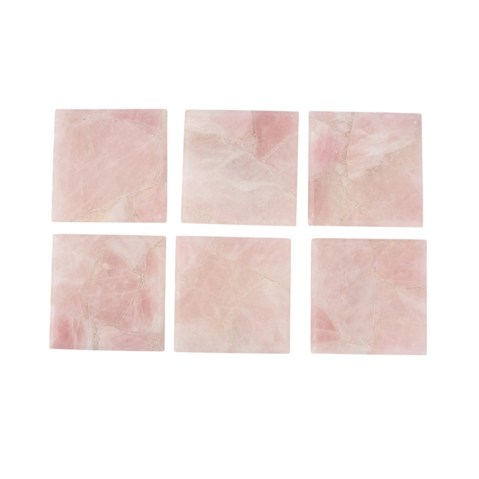 Bring natural elegance to your home with this stunning set of rose quartz coasters. Handcrafted from genuine rose quartz, each coaster showcases soft baby pink hues and unique natural veining, making every piece one of a kind. Both functional and decorative, they protect your surfaces while adding a refined, luxurious touch.