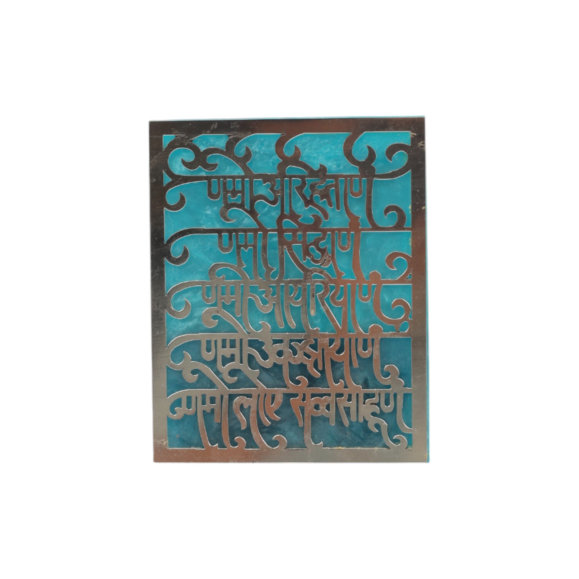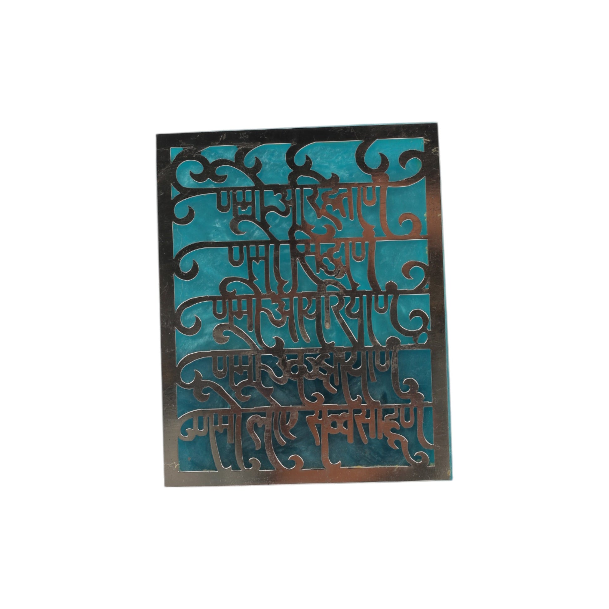 Elevate your accessory game with this striking statement ring, handcrafted with spiritual essence and artisanal precision. The ring showcases a beautifully intricate Sanskrit mantra etched in silver-plated brass, set against a rich turquoise-blue resin background that radiates calming energy.
