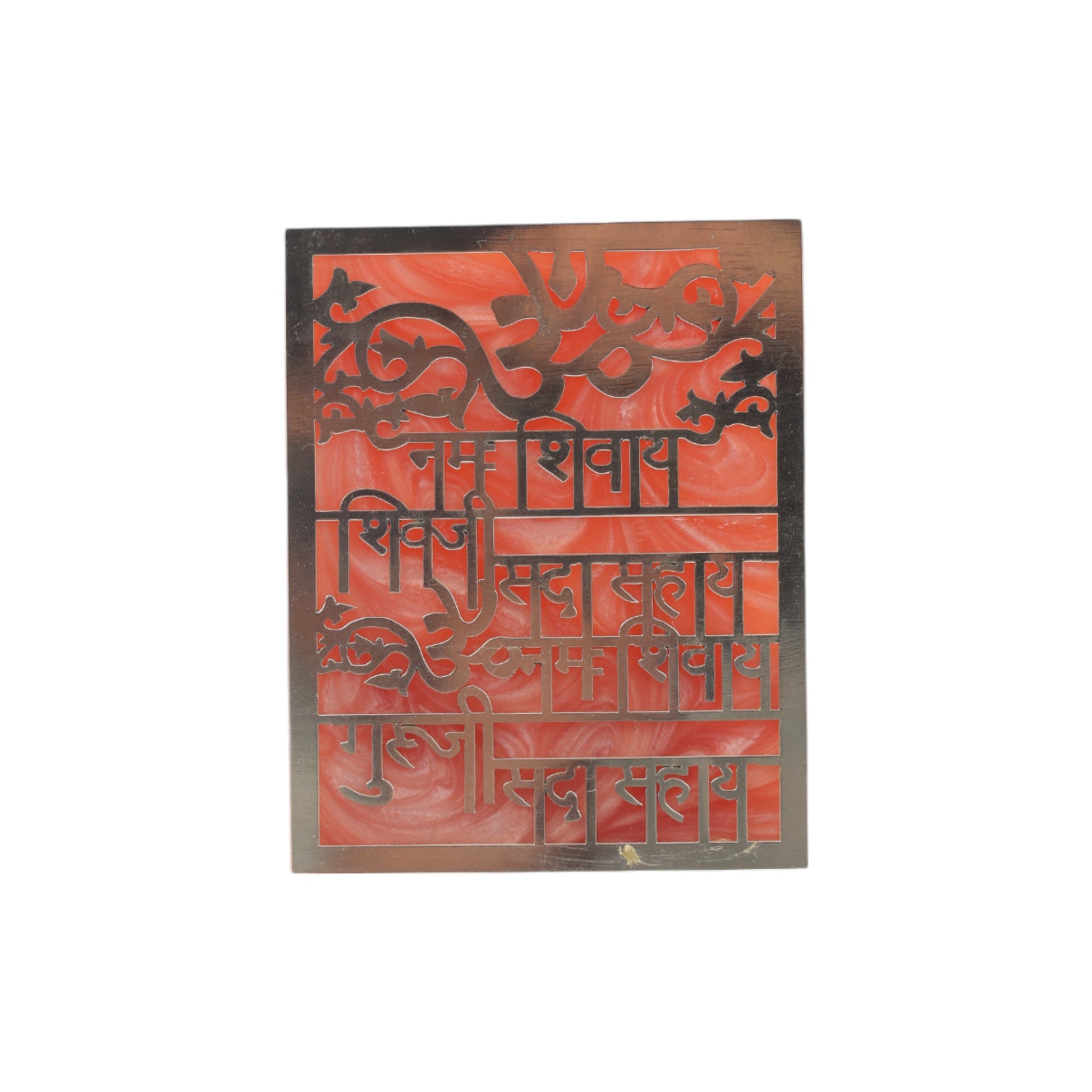 Elevate your accessory game with this striking statement ring, handcrafted with spiritual essence and artisanal precision. The ring showcases a beautifully intricate Sanskrit mantra etched in silver-plated brass, set against a rich peach resin background that radiates calming energy.